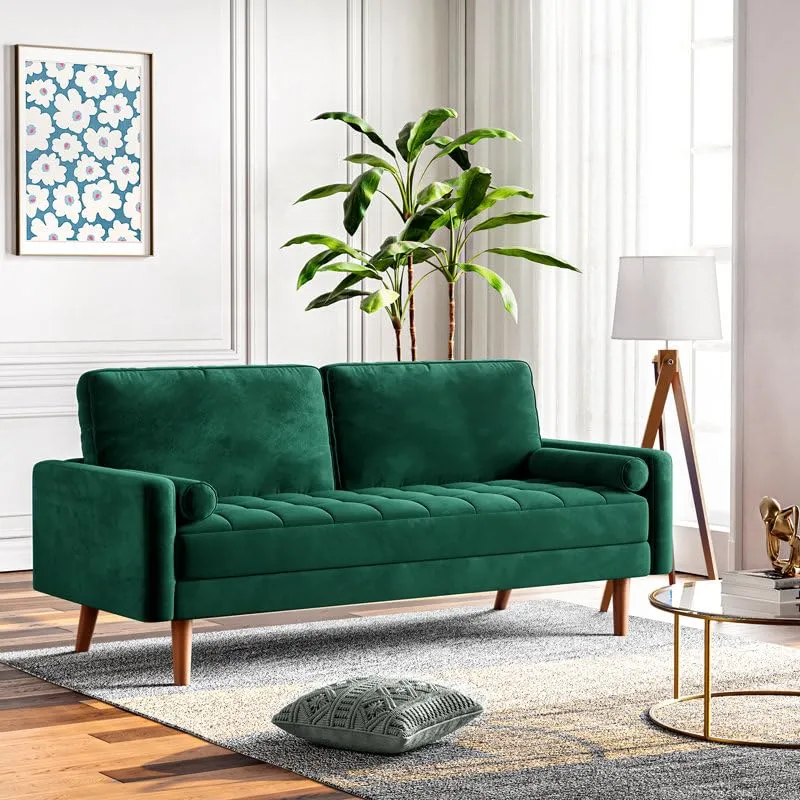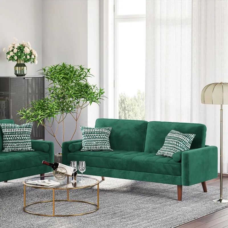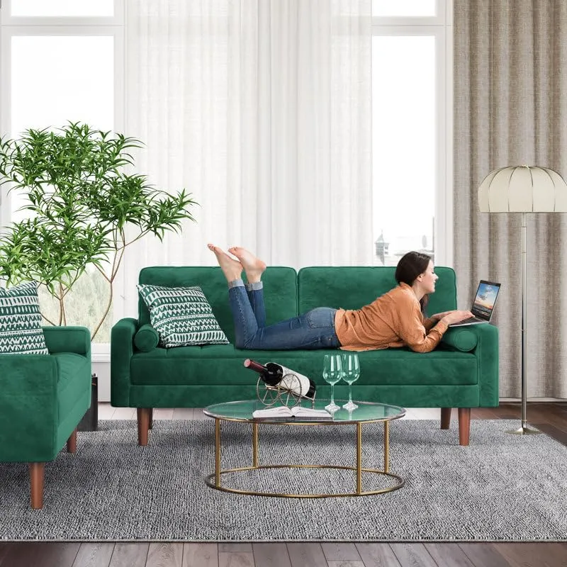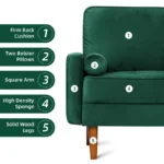 Homevibes 3 Seater Enedelia Premium Fabric Sofa |Stylish and Comfortable Living Room Furniture| Heavy Quality Sofa and Builtin| Throne of Comfort| Green , Three Seater